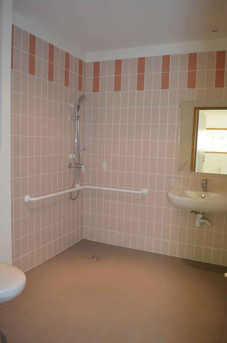 • D’une salle de bain adaptée (douche, WC, lavabo, sèche-serviette, siège, barre de maintien)